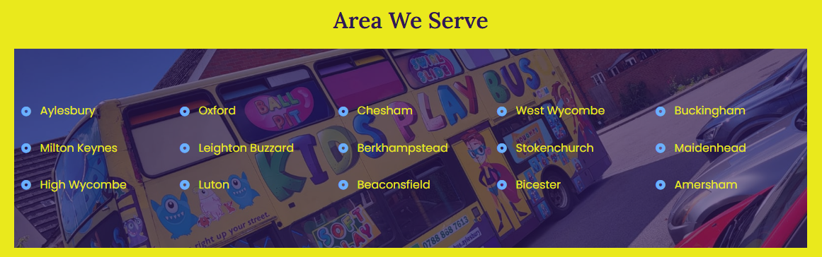 KidsPlayBus serves Milton Keynes, Chesham, Aylesbury, and the surrounding areas in the UK. For more information, visit the area covered.